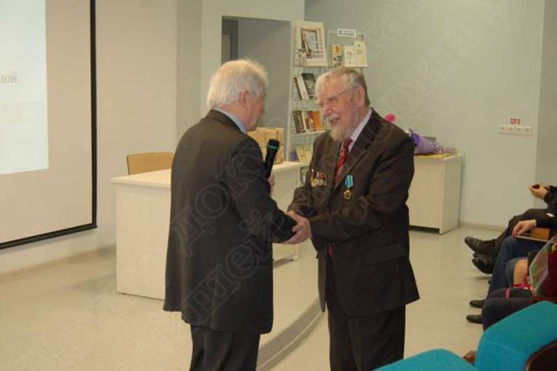 —//— | Мероприятие в учебно-научной библиотеке им. В.А. Журавлева, посвященное 75-летию доктора исторических наук В.Е. Владыкина. Поздравление советника при ректорате УдГУ Семёна Демьяновича Бунтова (слева) этнографа, доктора исторических наук, профессора Владимира Емельяновича Владыкина с 75-летием | 20 марта 2018 | JPEG, эл. ф/док., диск, хорошее | |