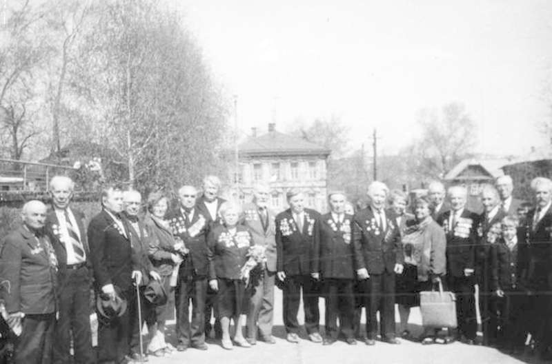 —//— | Встреча ветеранов 98-й стрелковой дивизии с учащимися школы. Второй ряд, слева направо: 4-й - Коротков С.М., Зубарев Степан Парфенович, Пономарев Иван Васильевич | позитив, фотобумага, удовлетворительное |