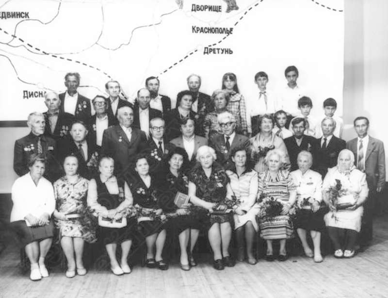 —//— | Встреча ветеранов 98-й стрелковой дивизии. Слева направо: 8-я - Носикова Валентина Степановна, 10-й - Зубарев Степан Парфенович, 12-й - Пономарев Иван Васильевич, 14-я - Зубарева Лидия Аркадьевна, 17-й - Очеев Иван Федорович. Копия. | ~1989 г. | позитив, фотобумага, удовлетворительное |