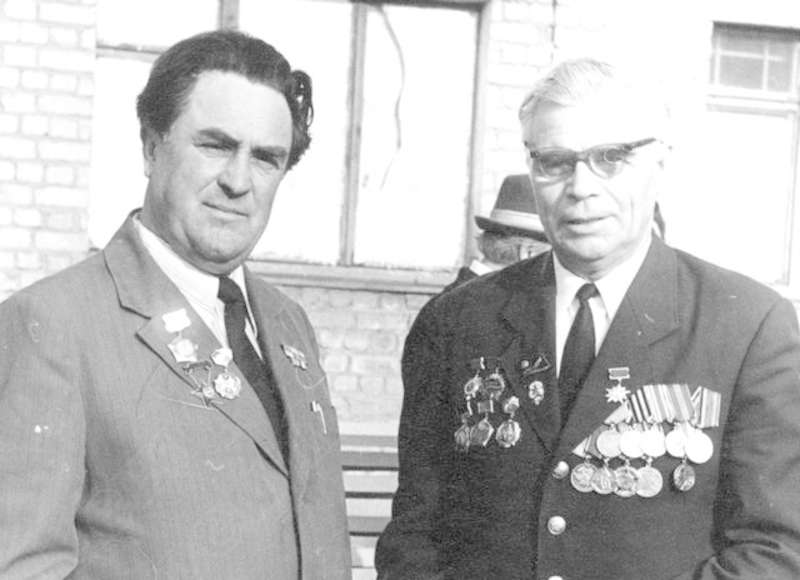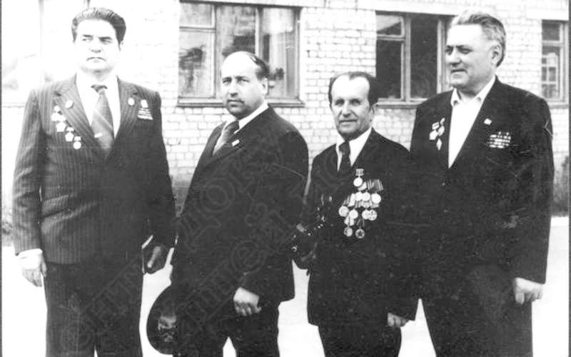 —//— | Ветераны 220-й Оршанской стрелковой дивизии во время встречи в г.Елец. Слева направо: Пащенко Василий Моисеевич; Кавецкий Станислав Семенович, создатель школьного музея по истории 220-й Оршанской стрелковой дивизии в д.Новый Двор Щукинского района Гродненской области; Шилов; Н.В. Ольховский. Имеется аннотация | 9 мая 1981 | позитив, фотобумага, удовлетворительное | |