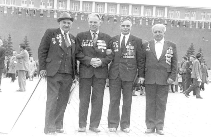 —//— | Ветераны 220-й Оршанской стрелковой дивизии на Красной площади. г.Москва. 2-й слева - Беляев Борис Александрович, секретарь Совета ветеранов дивизии, кавалер 3-х орденов Красной Звезды | ~май 1980 г. | позитив, фотобумага, удовлетворительное | |
