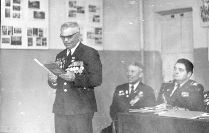 —//— | Торжественная встреча ветеранов 220-й Оршанской стрелковой дивизии со школьниками средней школы №2 г.Ржева. И.Г. Кулемин зачитывает дарственную надпись на книге "Героев наших имена" | 9 мая 1980 | позитив, фотобумага, удовлетворительное | |