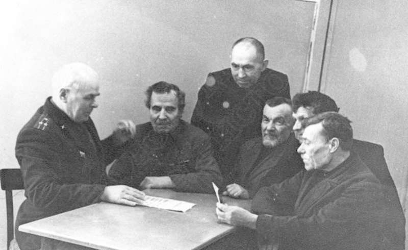 —//— | Встреча ветеранов Великой Отечественной войны. 1-й слева - Тимофеев Никифор Григорьевич | ~1970 г. | позитив, фотобумага, удовлетворительное | |