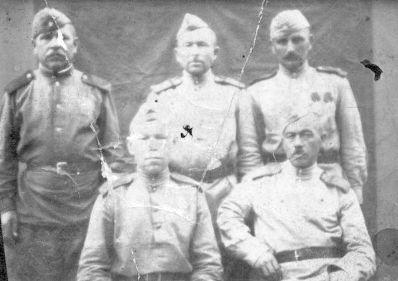 —//— | Бойцы 753-го пушечного артиллерийского полка. 1 ряд (снизу): А.Н. Козлов; Кузьмин; 2 ряд: Трефилов; Тимофеев Никифор Григорьевич; Беликов. Имеется аннотация | ~1944 г. | позитив, фотобумага, удовлетворительное | |