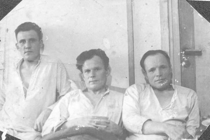 —//— | Раненые красноармейцы в больничной палате. г.Ронсдорф, Германия. Слева направо: Гончаров, лейтенант; Бордун, ст. лейтенант; Семакин Афанасий Иванович, капитан, командир 2-го стрелкового батальона 269-го гвардейского стрелкового полка 88-й стрелковой дивизии | ~май 1945 г. | позитив, фотобумага, удовлетворительное |