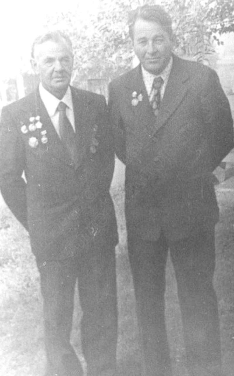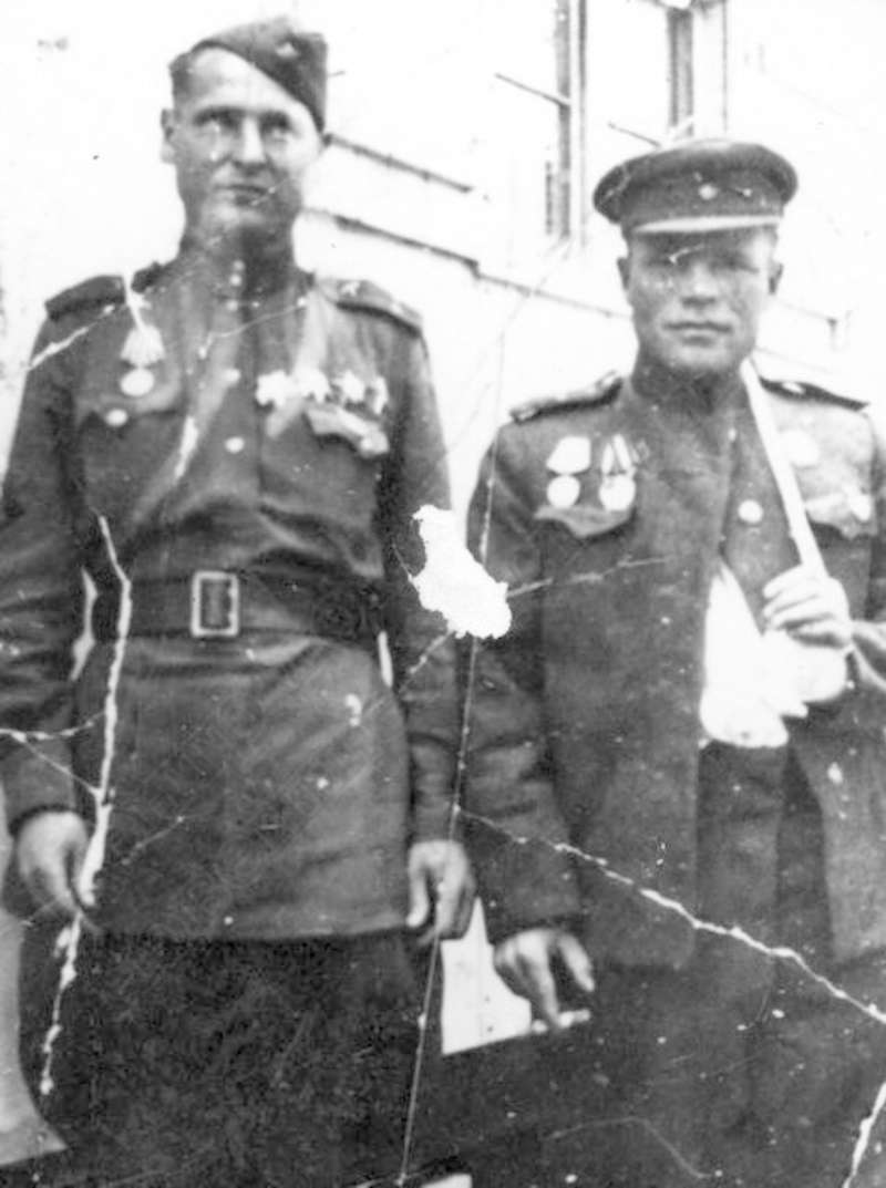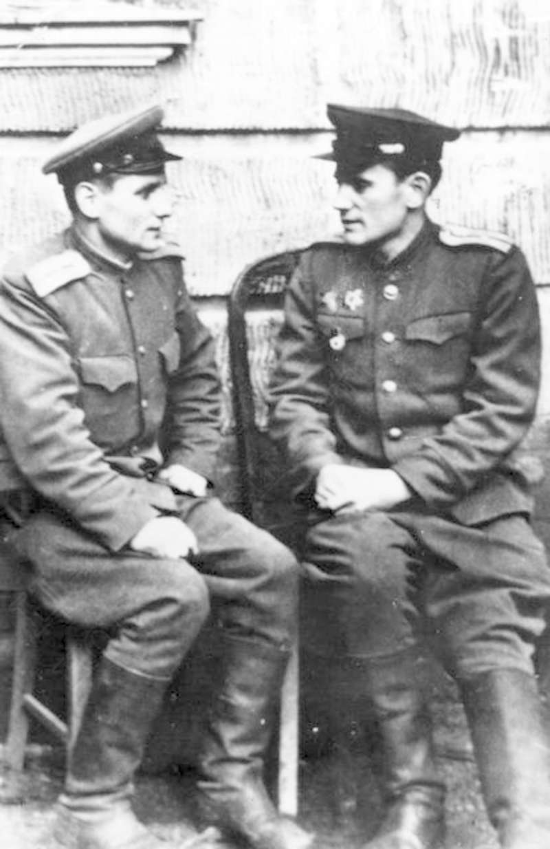—//— | Встреча братьев Богомоловых в г.Лодзь, Польша. Дмитрий Афанасьевич (слева), ст. лейтенант; Тимофей Афанасьевич (справа), ст.лейтенант, старший адъютант 2-го стрелкового батальона 269-го гвардейского стрелкового полка 88-й стрелковой дивизии. Имеется аннотация Т.А. Богомоловой. 30 декабря 1980 г. | ~1945 г. | позитив, фотобумага, удовлетворительное | |