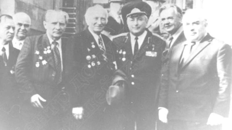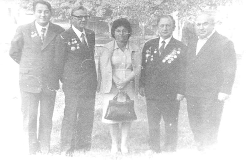 —//— | Встреча ветеранов 269-го гвардейского стрелкового полка 88-й стрелковой дивизии. г.Запорожье, Украинская ССР. Слева направо: Животовский Алексей Федорович; Вильд Павел Павлович, кавалер орденов А.Невского, Красного Знамени; Садыкова Эмма Давыдовна, жена А.Л. Садыкова; Глебов Николай Васильевич, командир 1-й пулемётной роты 269 гвардейского стрелкового полка 88-й стрелковой дивизии; Садыков Артовоз Арустамович, командир 2-й миномётной роты 269 гвардейского стрелкового полка 88-й стрелковой дивизии. Имеется аннотация И.Г. Кулемина | ~октябрь 1978 г. | позитив, фотобумага, удовлетворительное | |