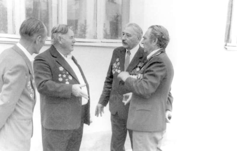 —//— | Ветераны 52-й отдельной разведывательной роты 51-й гвардейской стрелковой дивизии во время встречи в г.Куйбышеве. Слева направо: Крылов Константин Михайлович; [Исаев Николай Васильевич]; Санто Виктор Павлович; Васильев Евгений Дмитриевич. Снимок 3 | 14 июня 1986 | позитив, фотобумага, удовлетворительное | |