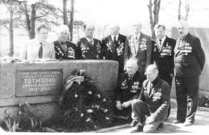 —//— | Ветераны Великой Отечественной войны - однополчане и брат у могилы Героя Советского Союза, разведчика 52-й отдельной разведывательной роты 51-й гвардейской стрелковой дивизии Д.Ф. Тотмятина в пос.Турмантас, Зарасайский район Литовской ССР. Стоят слева направо: Тотмятин; Волков; Урвант Федор Александрович, сержант, командир отделения; местный житель; Осипов Сергей Сергеевич; П.Ф. Анисимов; Санто Виктор Павлович. Сидят: Давыденко Иван; Крылов Константин Михайлович. Имеется аннотация | 9 мая 1987 | позитив, фотобумага, удовлетворительное | |