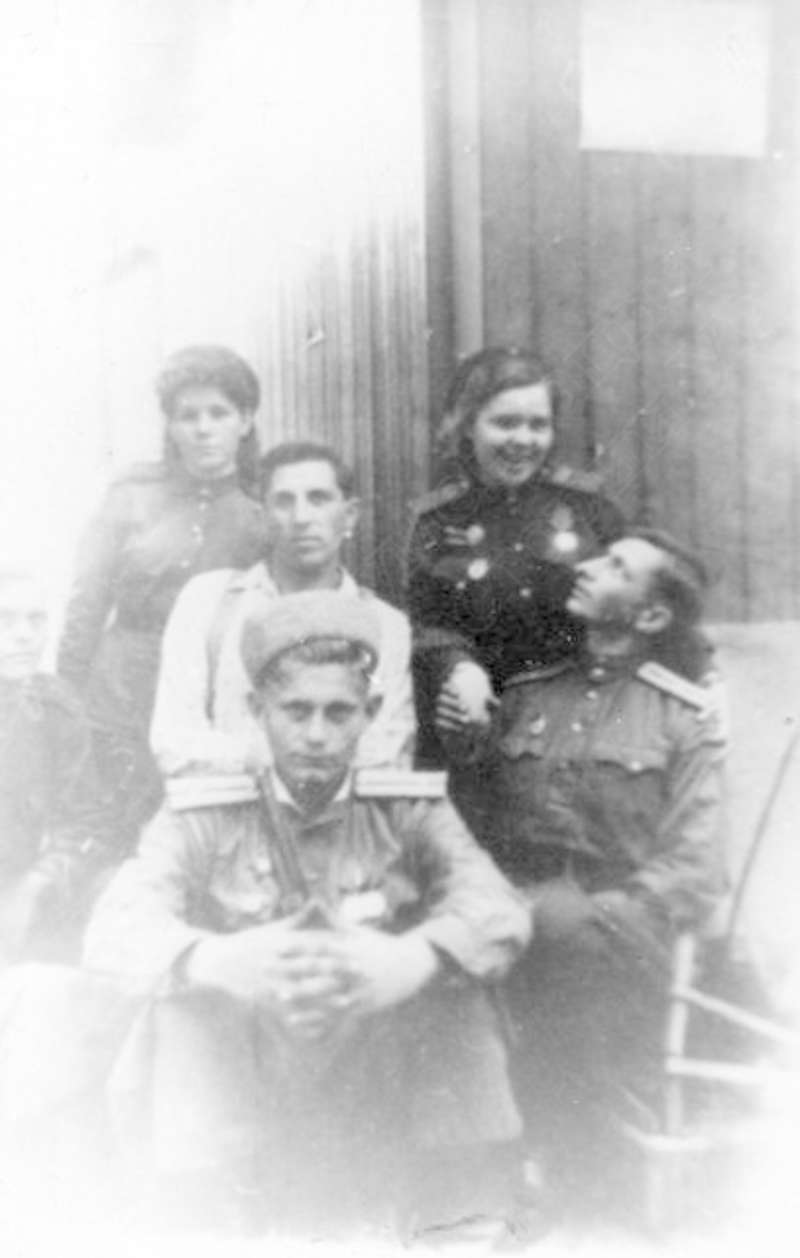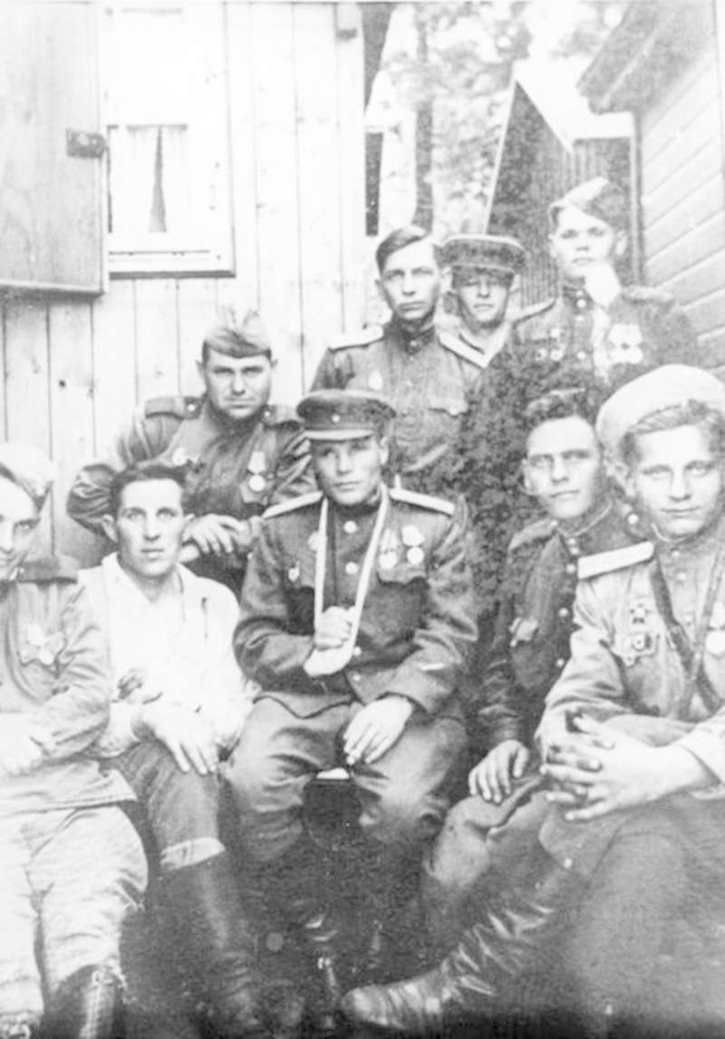 —//— | Офицеры и рядовые 2-го батальона 269-го стрелкового полка 88-й гвардейской стрелковой дивизии в госпитале г.Ронсдорф, Германия. 1 ряд (снизу) слева направо: Животовский Алексей Федорович, писарь; Асланов, мл. лейтенант; Семакин Афанасий Иванович, капитан, командир батальона; Колесников Василий, ст. лейтенант; Казаков Петр, мл. лейтенант; 2 ряд: 1-й - Якименко Иван Васильевич, ст. сержант; 4-й - Трегубов. Имеется аннотация | ~май 1945 г. | позитив, фотобумага, удовлетворительное | |