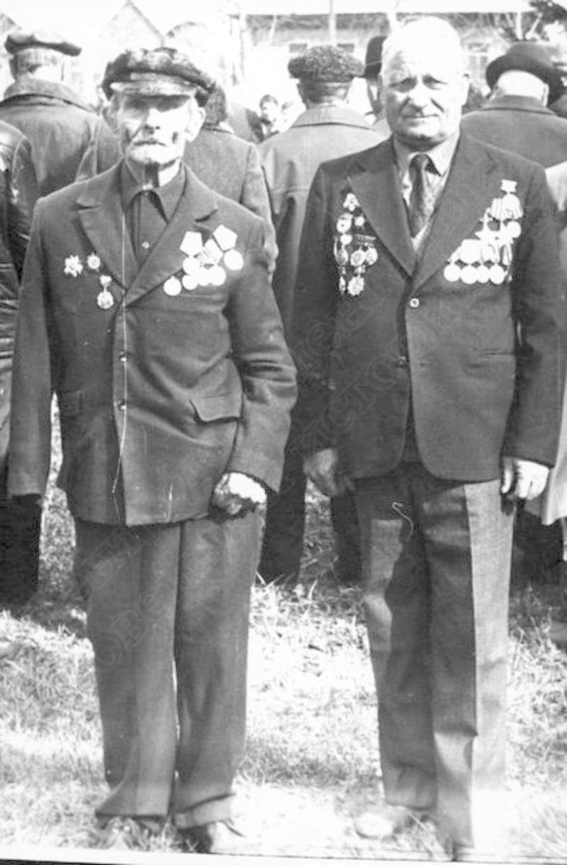 —//— | Встреча ветеранов Великой Отечественной войны. Воеводин Федор Васильевич (справа), разведчик 52-й отдельной разведывательной роты 51-й гвардейской стрелковой дивизии, кавалер ордена Славы 2-й, 3-й ст., ордена Красной Звезды | 9 мая 1986 | позитив, фотобумага, удовлетворительное | |