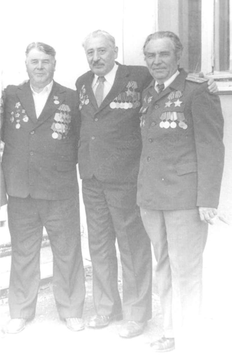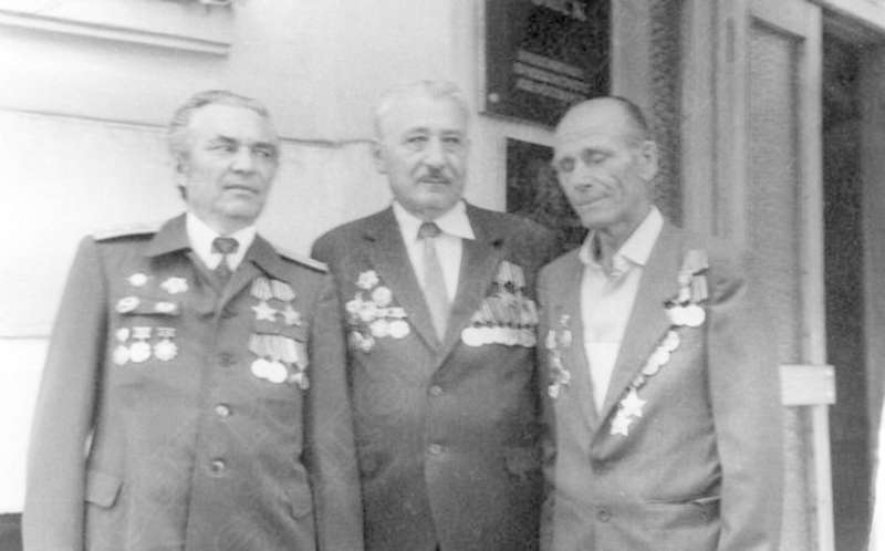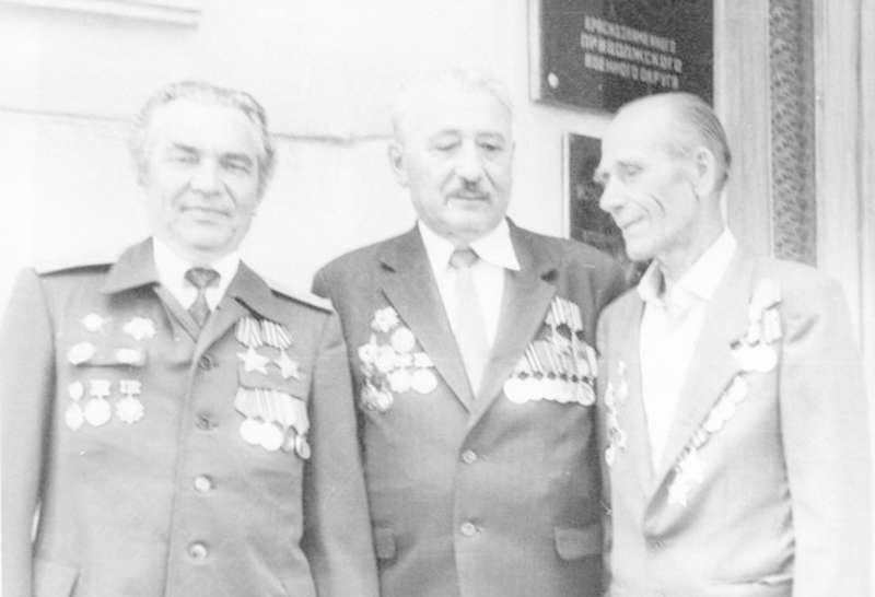 —//— | Ветераны 52-й отдельной разведывательной роты 51-й гвардейской стрелковой дивизии во время встречи в г.Куйбышеве. Слева направо: Крылов Константин Михайлович; Васильев Евгений Дмитриевич; Санто Виктор Павлович | 14 июня 1986 | позитив, фотобумага, удовлетворительное | |