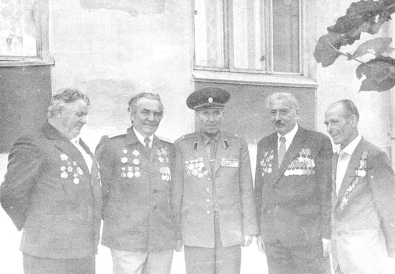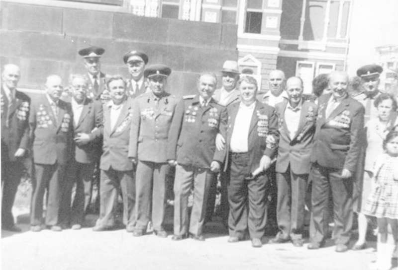 —//— | Ветераны 52-й отдельной разведывательной роты 51-й гвардейской стрелковой дивизии во время встречи в г.Куйбышеве. Справа налево: 4-й - Санто Виктор Павлович; 5-й - Крылов Константин Михайлович; 7-й - П.Ф. Анисимов; 9-й - Васильев Евгений Дмитриевич | 14 июня 1986 | позитив, фотобумага, удовлетворительное | |
