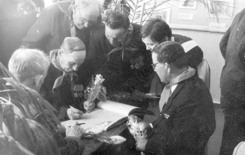 —//— | Участники гражданской войны 1918-1919 гг. на республиканском слете, посвященном 50-летию освобождения территории Удмуртской АССР на встрече со школьниками | ~июнь 1969 г. | позитив, фотобумага, удовлетворительное |