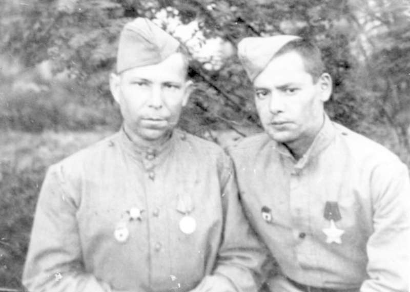 —//— | Рядовые 52-й отдельной разведывательной роты 51-й гвардейской стрелковой дивизии. Кавалер ордена Славы 3-й ст. (справа), кавалер ордена Красной Звезды (слева) | ~1944 г. | позитив, фотобумага, удовлетворительное | |