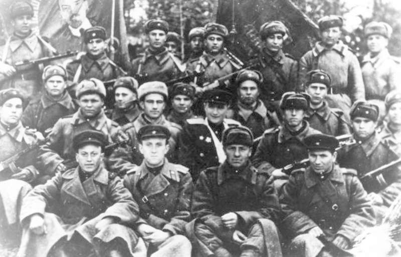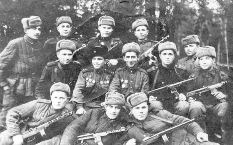 —//— | Командиры и бойцы 52-й отдельной разведывательной роты 51-й гвардейской стрелковой дивизии в Прибалтике. 1 ряд (сверху): 1-й - Санто Виктор Павлович, сержант, санинструктор; 2-й - Иванов Николай Алексеевич; 4-й - Киршин Михаил Васильевич; 2 ряд: 1-й - Воронцов, старшина, парторг; 2-й - Дураков Николай Петрович, ст. лейтенант, командир взвода, кавалер ордена Красного Знамени, Красной Звезды; 4-й - Урвант Федор Александрович, старшина; 3-й ряд: в центре - Яровой Иван Савельевич, ст. сержант. Имеется дарственная надпись Н.А. Иванова родным (11 января 1945 г.) | ~январь 1945 г. | позитив, фотобумага, удовлетворительное | |