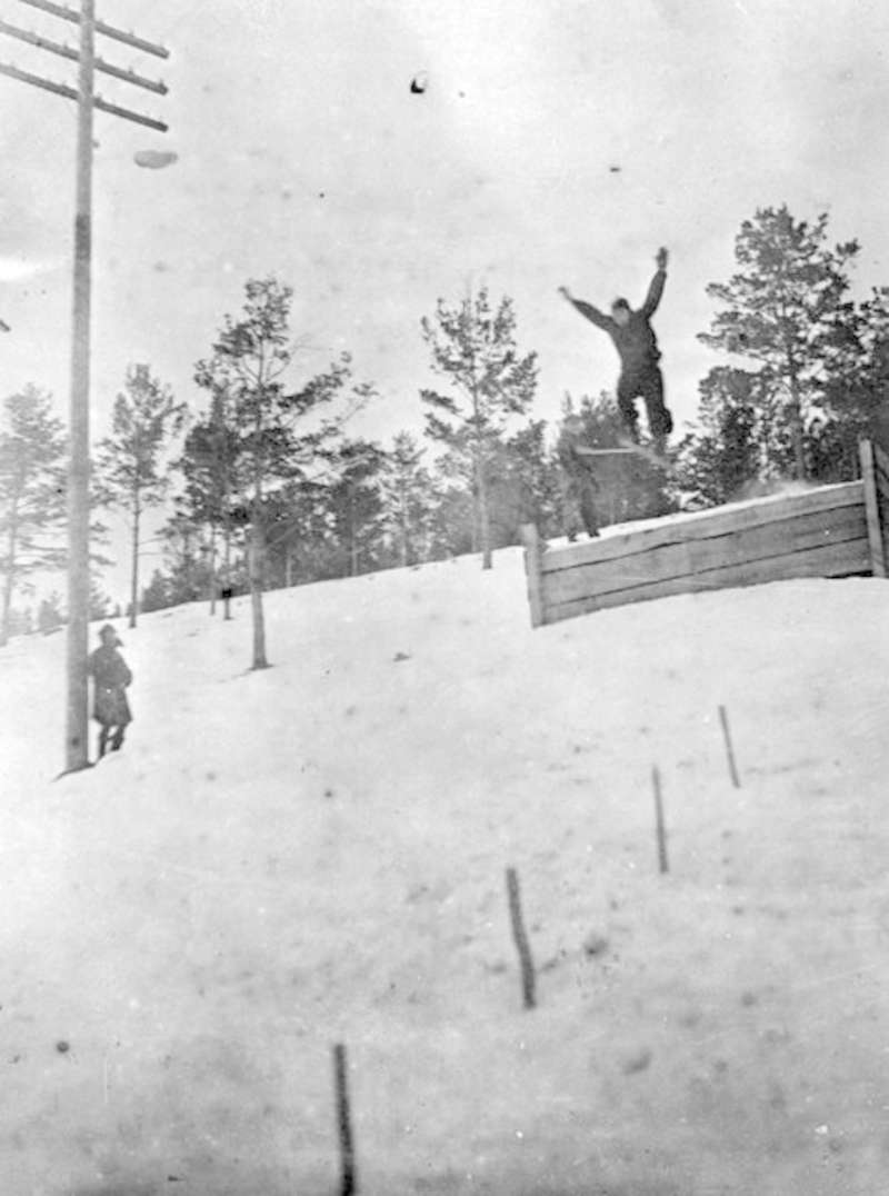 —//— | Курсант Иркутского военного авиационного технического училища И.Г. Кулемин на лыжах прыгает с трамплина. Кайские горы | 24 марта 1937 | позитив, фотобумага, удовлетворительное | |