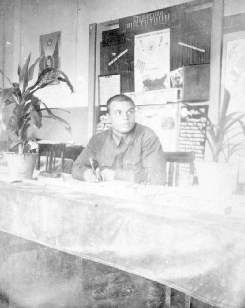 —//— | Курсант Иркутского военного авиационного технического училища И.Г. Кулемин за рабочим столом. г.Иркутск | ~март 1937 г. | позитив, фотобумага, удовлетворительное | |