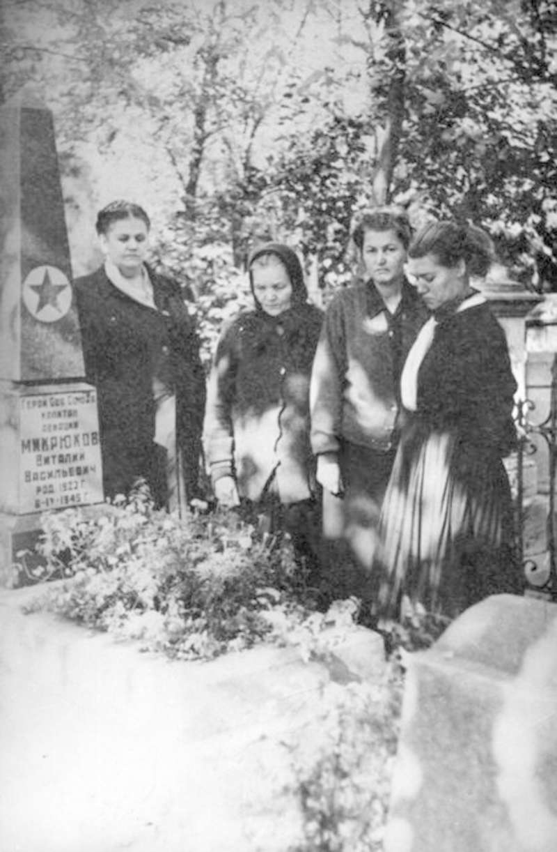 —//— | Родственники на могиле В.В. Микрюкова, Героя Советского Союза. г.Одесса. Слева направо: Вера Петровна; Александра Кузьминична, мать; Нина, сестра; Тамара, сестра | ~1960 г. | позитив, фотобумага, удовлетворительное | |