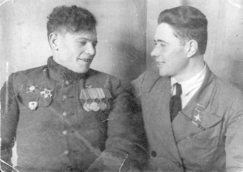 —//— | Колпаков Петр Иванович (слева), Герой Советского Союза с земляком. Имеется аннотация | ~1950 г. | позитив, фотобумага, удовлетворительное | |