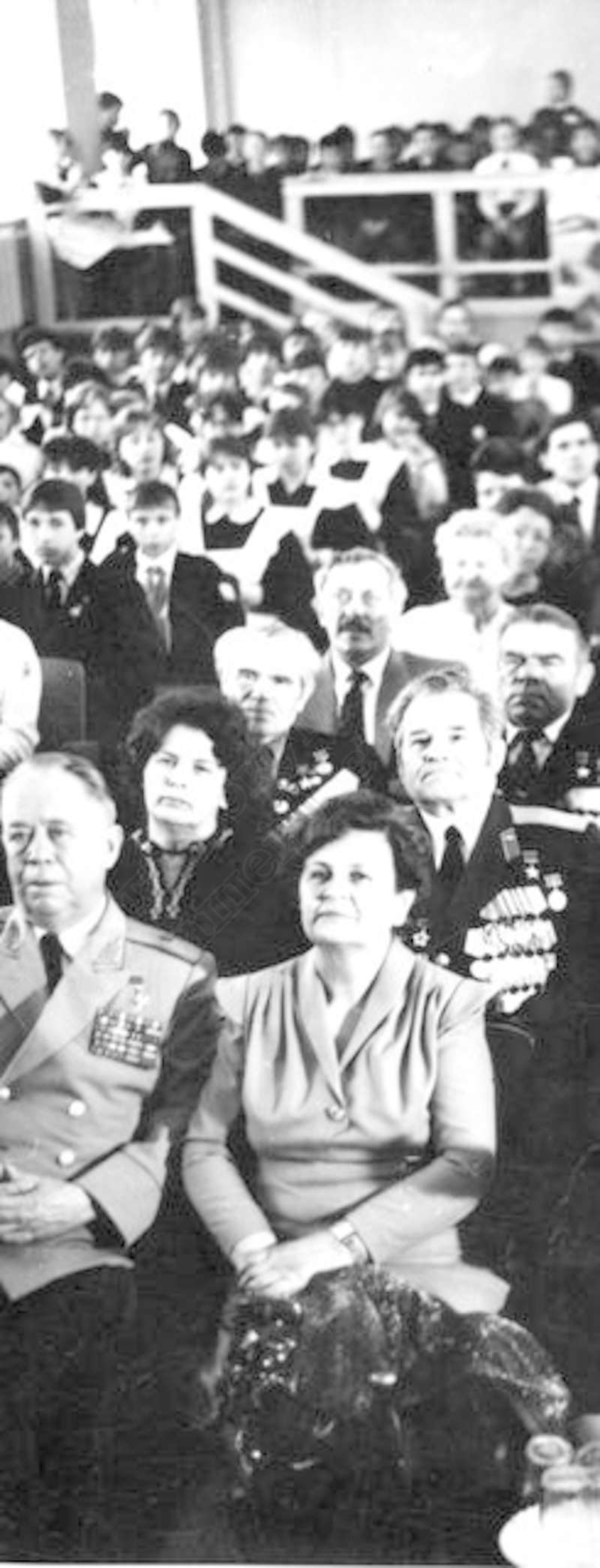 —//— | Встреча учащихся школ с ветеранами Великой Отечественной войны. 2 ряд (снизу) 1-й справа - Рыков Леонид Васильевич, полковник, Герой Советского Союза, кавалер ордена Ленина, 2-х орденов Красного Знамени, Красной Звезды; 3 ряд 2-й справа: Торопов Артемий Демидович, Герой Советского Союза, кавалер 2-х орденов Ленина, 4-х орденов Красного Знамени, Красной Звезды | ~1980 г. | позитив, фотобумага, удовлетворительное | |