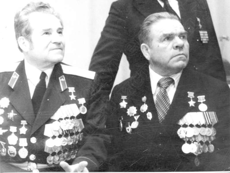 —//— | Встреча ветеранов Великой Отечественной войны. Рыков Леонид Васильевич (слева), полковник, Герой Советского Союза, кавалер ордена Ленина, 2-х орденов Красного Знамени, Красной Звезды | ~1980 г. | позитив, фотобумага, удовлетворительное | |