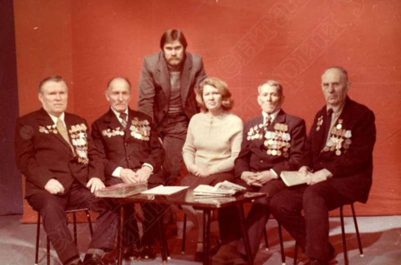 —//— | Встреча ветеранов Великой Отечественной войны. Слева направо: 1-й - Пермяков Алексей Назарович, полный кавалер ордена Славы; 2-й - Коробейников Николай Якимович, полный кавалер ордена Славы; 5-й - Емельянов Тарас Федорович, полный кавалер ордена Славы, ордена Красной Звезды; Антропов Анатолий Степанович, полный кавалер ордена Славы | ~1980 г. | позитив, фотобумага, удовлетворительное | |