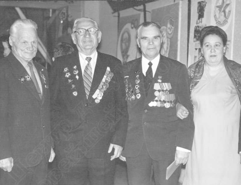 —//— | Встреча ветеранов Великой Отечественной войны. Слева направо: Опалев Владимир Никифорович, полковник, Герой Советского Союза, кавалер 2-х орденов Ленина, 2-х орденов Красного Знамени, 2-х орденов Красной Звезды; И.Г. Кулемин; Рыков Леонид Васильевич, полковник, Герой Советского Союза, кавалер ордена Ленина, 2-х орденов Красного Знамени, Красной Звезды | ~1980 г. | позитив, фотобумага, удовлетворительное | |