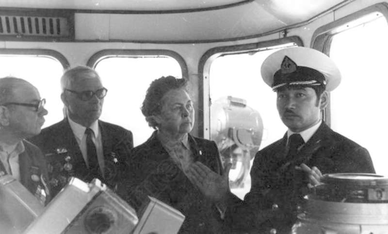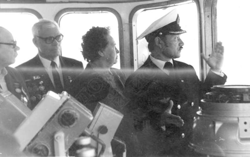 —//— | Участники встречи ветеранов Великой Отечественной войны на капитанском мостике теплохода "Остров". 2-й слева - И.Г. Кулемин; 4-й - капитан корабля | ~май 1983 г. | позитив, фотобумага, удовлетворительное | |