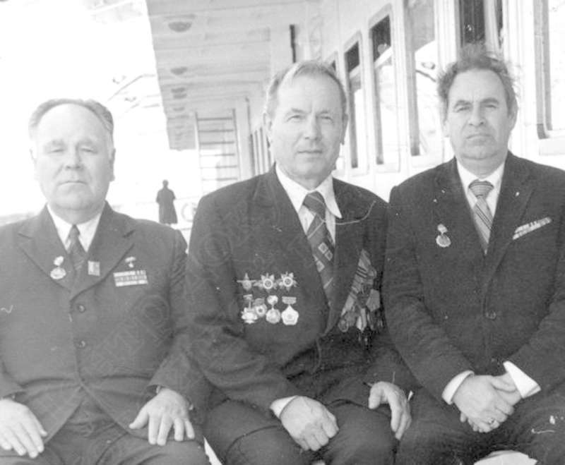 —//— | Встреча ветеранов Великой Отечественной войны. Слева направо: Ширяев Николай Степанович, кавалер ордена Ленина, 2-х орденов Красного Знамени; Коротков Герман Владимирович, Герой Советского Союза, кавалер ордена Ленина, Красной Звезды; Юхнин Виктор Михайлович, Герой Советского Союза, кавалер ордена Ленина; Антропов Анатолий Степанович, полный кавалер ордена Славы; Коробейников Николай Якимович, полный кавалер ордена Славы; И.Г. Кулемин | ~1981 г. | позитив, фотобумага, удовлетворительное | |