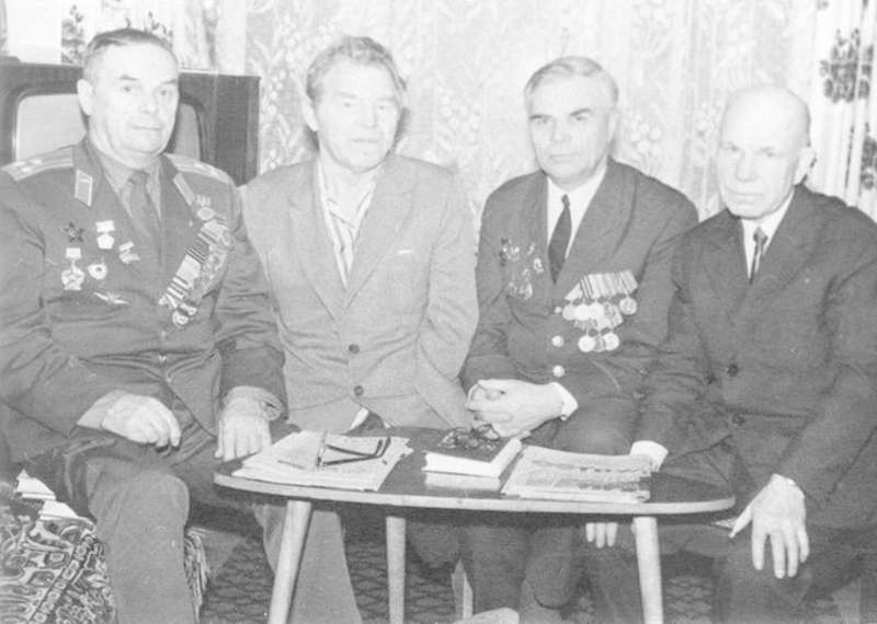 —//— | Встреча ветеранов Великой Отечественной войны. 1-й слева - Томиловский Георгий Сергеевич, полковник, Герой Советского Союза, кавалер ордена Ленина, 2-х орденов Красного Знамени, ордена Суворова 3 ст., Кутузова 2 ст., Красной Звезды | ~1970 г. | позитив, фотобумага, удовлетворительное | |