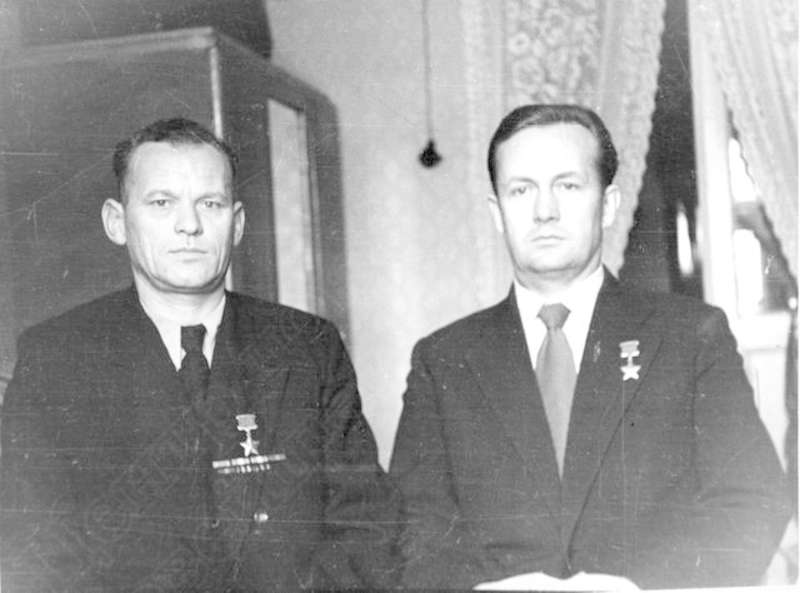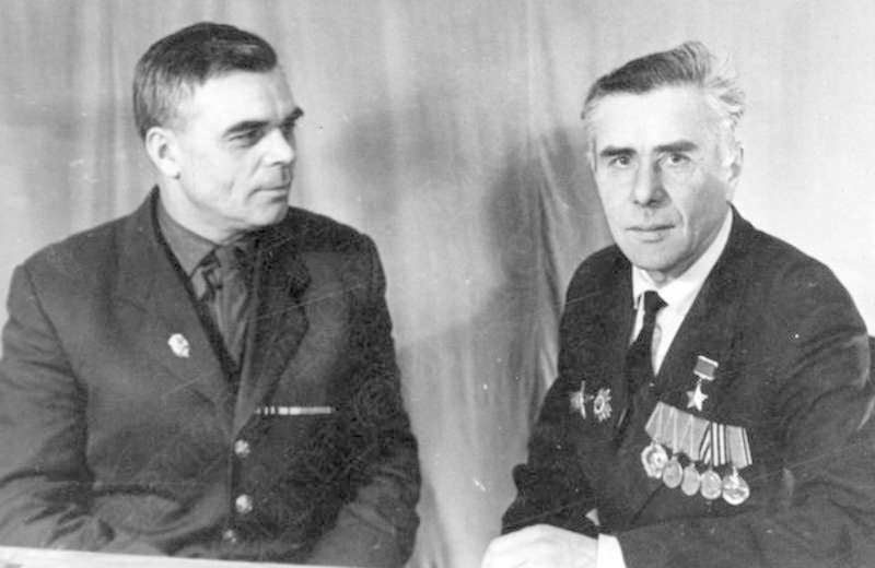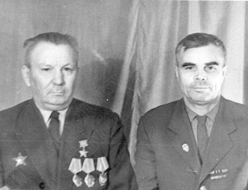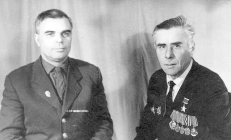—//— | Встреча ветеранов Великой Отечественной войны. Заровняев Анатолий Иванович (слева), Герой Советского Союза | ~1970 г. | позитив, фотобумага, удовлетворительное | |