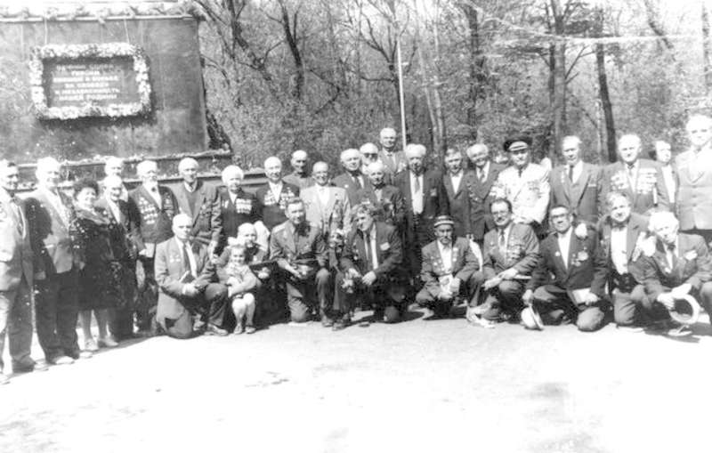 —//— | Ветераны 220-й Оршанской стрелковой дивизии у памятника воинам, павшим в годы Великой Отечественной войны. г.Елец. 1 ряд (снизу): 1-й - И.Г. Кулемин. 2 ряд: 1-й справа - Н.В. Ольховский | ~май 1991 г. | позитив, фотобумага, удовлетворительное | |