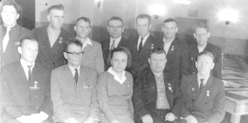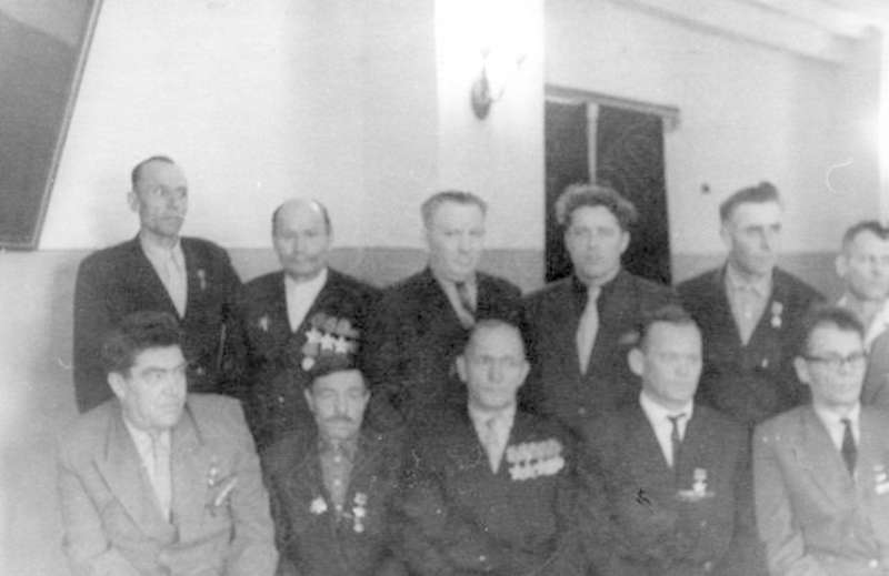—//— | Встреча ветеранов Великой Отечественной войны. 6-й слева - Девятьяров Александр Андреевич, Герой Советского Союза, кавалер ордена Ленина, 2-х орденов Красного Знамени, 2-х Красной Звезды | 29 мая 1965 | позитив, фотобумага, удовлетворительное | |