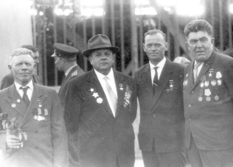 —//— | Встреча ветеранов Великой Отечественной войны. 1-й справа - Девятьяров Александр Андреевич, Герой Советского Союза, кавалер ордена Ленина, 2-х орденов Красного Знамени, 2-х Красной Звезды; 3-й - Томиловский Георгий Сергеевич, Герой Советского Союза, кавалер ордена Ленина, 2-х орденов Красного Знамени, Красной Звезды | 29 мая 1965 | позитив, фотобумага, удовлетворительное | |