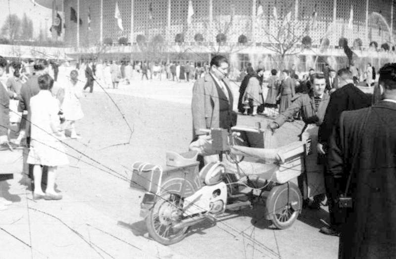 —//— | Прогулочная моторикша у павильона США Международной промышленной выставки EXPO-58 в Брюсселе. Снимок 1 | ~1958 г. | негатив, пленка, удовлетворительное | |