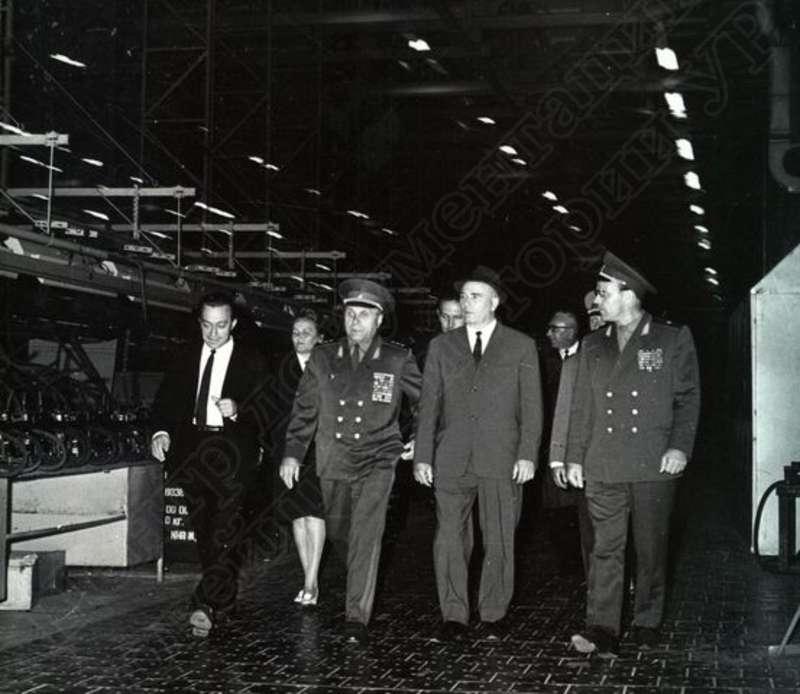—//— Члены [делегации Министерства внутренних дел СССР] на экскурсии в цехе Ижевского машиностроительного завода. Слева направо - 2-я - Максимова Анна Георгиевна, секретарь Удмуртского обкома КПСС; 4-й - Марисов Валерий Константинович, первый секретарь Удмуртского обкома КПСС.г. Ижевск ~1967 г. позитив, фотобумага, удовлетворительное Члены [делегации Министерства внутренних дел СССР] на экскурсии в цехе Ижевского машиностроительного завода. Слева направо - 2-я - Максимова Анна Георгиевна, секретарь Удмуртского обкома КПСС; 4-й - Марисов Валерий Константинович, первый секретарь Удмуртского обкома КПСС.г. Ижевск