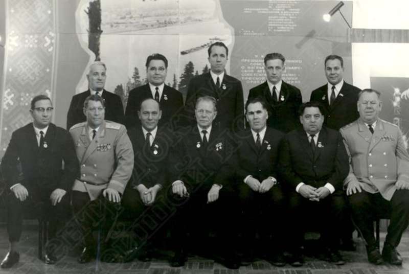 —//— Секретарь ЦК КПСС Устинов Дмитрий Федорович (сидит в центре) с [участниками торжественного собрания, посвященного 50-летию образования УАССР]. Сидит 1-й слева - Кардаполов Виктор Алексеевич, секретарь Удмуртского обкома КПСС. Стоят во 2-м ряду (слева направо): 1-й - Яков Иосифович Черняков, секретарь Ленинского райкома КПСС г. Ижевска; 2-й - Никитин Евстафий Петрович, второй секретарь Удмуртского обкома КПСС; 3-й - Шишкин Борис Владимирович, председатель Ижевского городского Совета депутатов трудящихся; 4-й - Московкин, секретарь комитета КПСС Ижевского машиностроительного завода.г. Ижевска. На обороте имеется аннотация 4 ноября 1970 позитив, фотобумага, удовлетворительное Секретарь ЦК КПСС Устинов Дмитрий Федорович (сидит в центре) с [участниками торжественного собрания, посвященного 50-летию образования УАССР]. Сидит 1-й слева - Кардаполов Виктор Алексеевич, секретарь Удмуртского обкома КПСС. Стоят во 2-м ряду (слева направо): 1-й - Яков Иосифович Черняков, секретарь Ленинского райкома КПСС г. Ижевска; 2-й - Никитин Евстафий Петрович, второй секретарь Удмуртского обкома КПСС; 3-й - Шишкин Борис Владимирович, председатель Ижевского городского Совета депутатов трудящихся; 4-й - Московкин, секретарь комитета КПСС Ижевского машиностроительного завода.г. Ижевска.  На обороте имеется аннотация