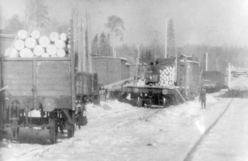 —//— | Альбом строительства железнодорожной линии Ижевск- Балезино. Погрузка леса и дров для Ижевских заводов. Снимок 1 | ~1943 г. | позитив, фотобумага, удовлетворительное | |