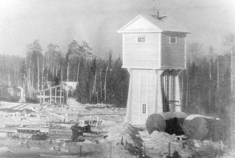 —//— | Альбом строительства железнодорожной линии Ижевск- Балезино. Башня- ускоритель для водоснабжения паровозов на станции Игра | ~1943 г. | позитив, фотобумага, удовлетворительное |