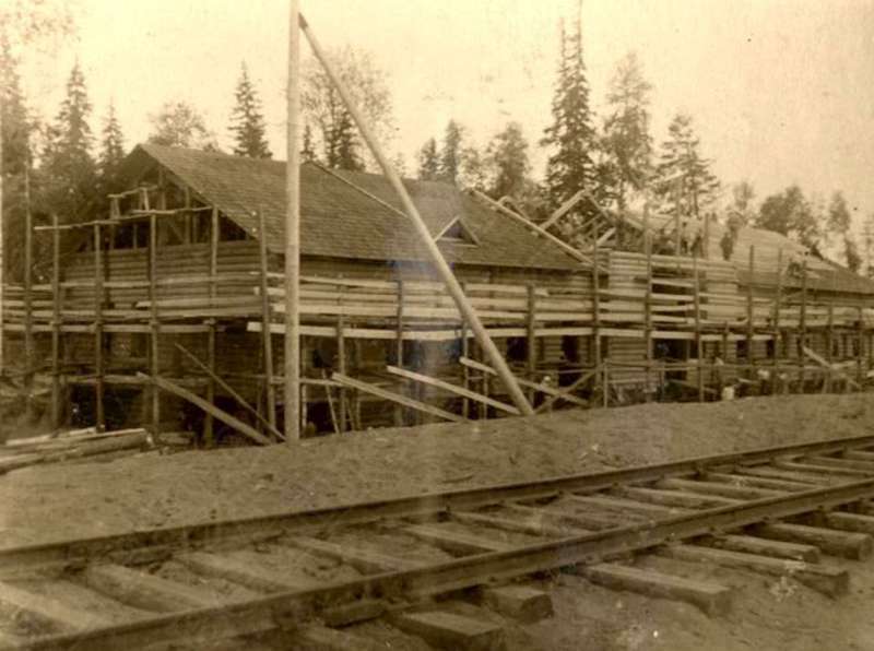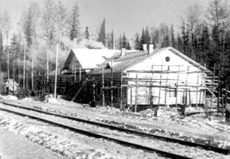 —//— | Альбом строительства железнодорожной линии Ижевск- Балезино. Строящееся здание пассажирского вокзала на 100 человек на ст. Игра. Снимок 1 | ~1943 г. | позитив, фотобумага, удовлетворительное | |
