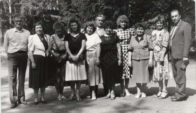 Слева направо: 5-й в 1-м ряду сверху - заведующий идеологическим отделом Удмуртского обкома КПСС Юрий Иванович Копысов; 2-й ряд: 7-я - заведующая Партийным архивом Удмуртского обкома КПСС Любовь Федоровна Сентемова, 11-я - научный  сотрудник Партийного архива Удмуртского обкома КПСС Зоя Александровна Максимова; 1-й ряд снизу: 8-й - первый секретарь Удмуртского обкома КПСС Петр Семенович Грищенко.