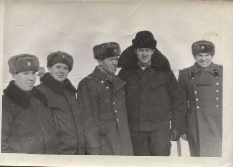 —//— | Второй секретарь Ижевского горкома ВЛКСМ Юрий Иванович Копысов (2-й справа) среди военнослужащих - участников танковых учений. | ~февраль 1962 г. | позитив, фотобумага, удовлетворительное | |