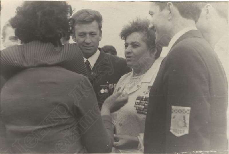 —//— | Встреча делегатов V Всесоюзного слета участников похода комсомольцев и молодежи по местам революционной, боевой и трудовой славы советского народа с Героем Советского Союза, летчицей Марией Павловной Чечневой (в центре). 2-й справа - секретарь- заведующий отделом пропаганды и культурно-массовой работы Удмуртского обкома ВЛКСМ Юрий Иванович Копысов. г. Ульяновск. | ~август 1970 г. | позитив, фотобумага, удовлетворительное | |