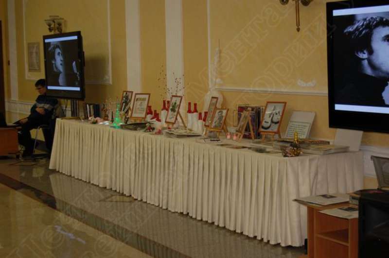 —//— | Вечер памяти В.С.Высоцкого, посвящённый 75-летию со дня рождения поэта "Я не верю судьбе" в Доме Дружбы народов в г. Ижевске. Выставка книг, пластинок и статей о Владимире Высоцком. Снимок 2 | 25 января 2013 | JPG, эл.ф/док., диск, хорошее |