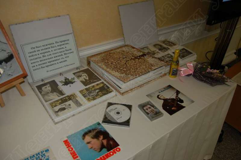 —//— | Вечер памяти В.С.Высоцкого, посвящённый 75-летию со дня рождения поэта "Я не верю судьбе" в Доме Дружбы народов в г. Ижевске. Экспонаты выставки о Владимире Высоцком. Снимок 1 | 25 января 2013 | JPG, эл.ф/док., диск, хорошее |